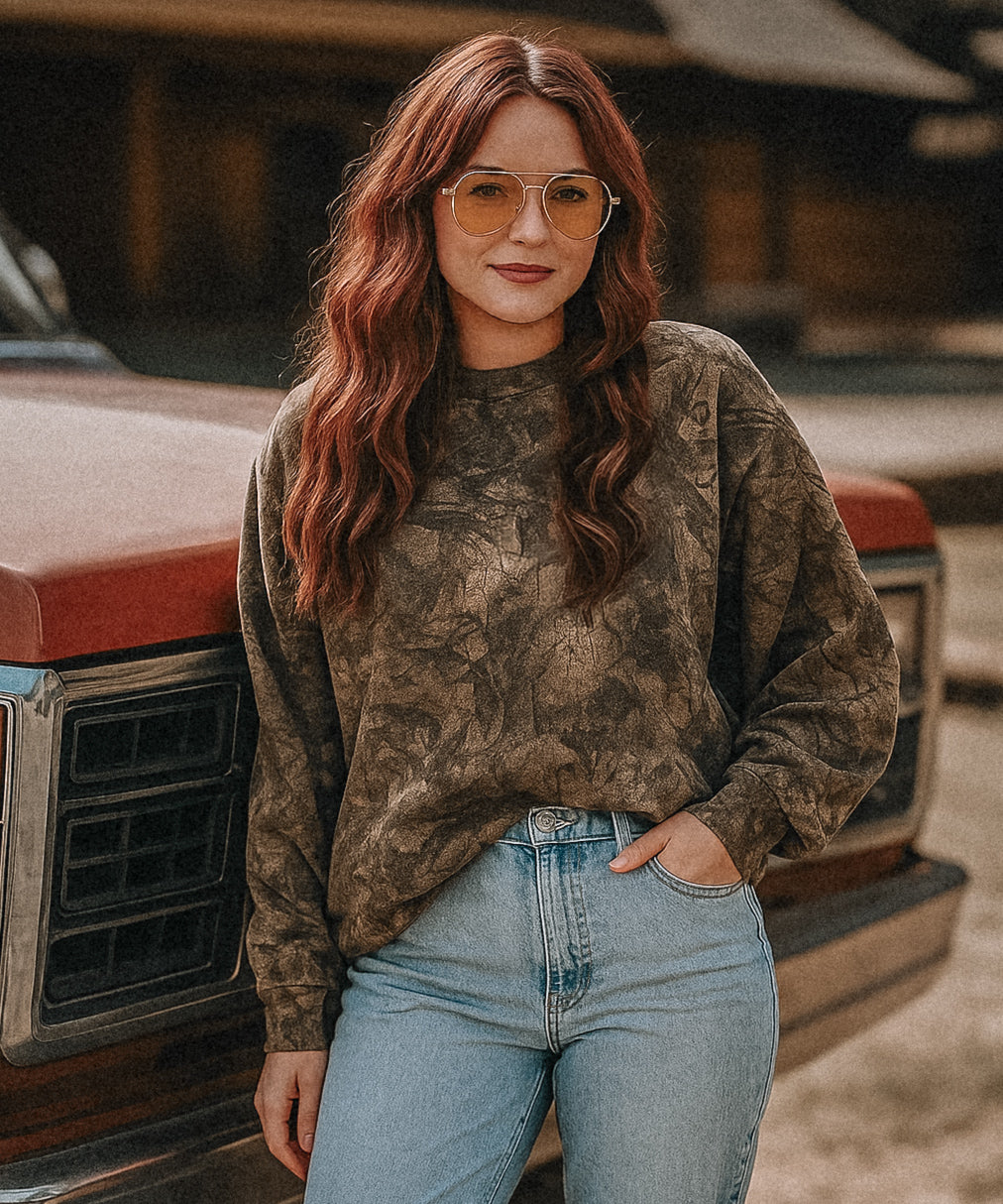 MOQ 3 • The trendy Camo Crew Neck Sweatshirt adds a bold touch to your casual wardrobe. It features a camo print, long sleeves with dropped shoulders, a crew neckline, and ribbed cuffs and hem making it the perfect choice for a trendy and comfortable look.